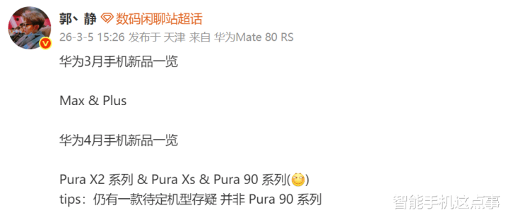 4月才是重头戏:Pura X2系列、Pura 90系列等旗舰都发,甚而还有一接待定机型悬而未决,型号暂时成谜。