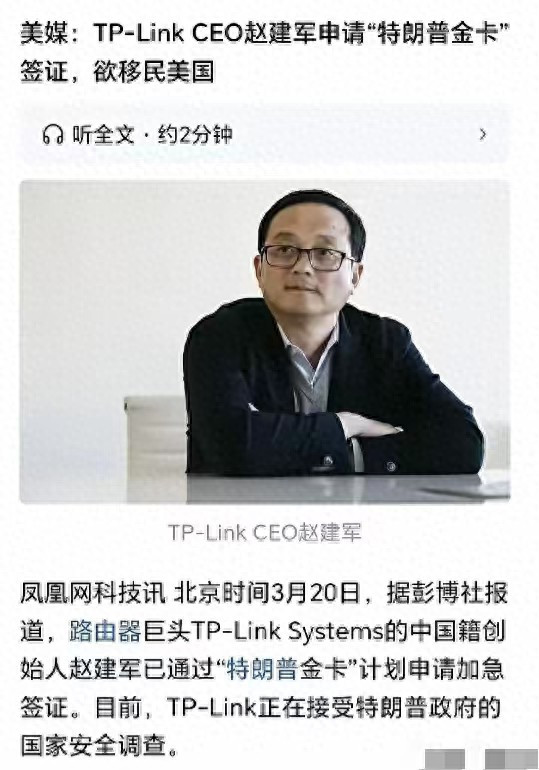 好意思国彭博社的音讯,赵建军已通过“特朗普金卡”策动央求加急签证。而TP-Link在一份声明中也默示,赵建军偏激夫人正在央求好意思国公民身份,但圮绝就任何“特朗普金卡”央求发表批驳。这样来看,音讯属实。