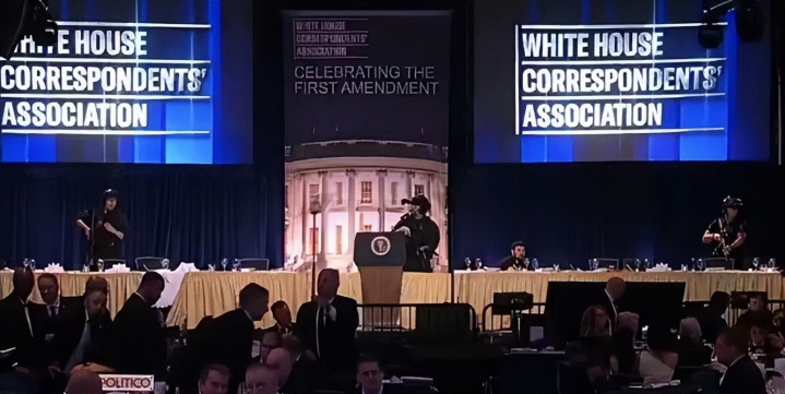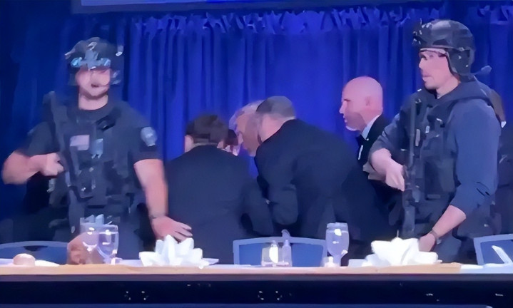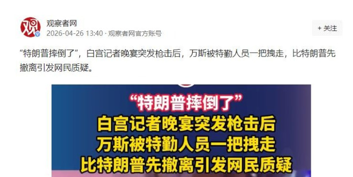 列位好啊,我是老山~,4 月 25 日晚,华盛顿希尔顿货仓白宫记者协会晚宴上,特朗普出席仅半小时,安检区突响枪声,特勤局先拽走副总统万斯,特朗普被架着猫腰躲桌下,猬缩时还疑似摔了一跤。
