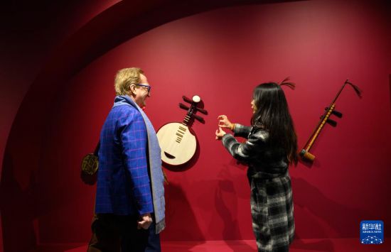 1月26日,在北京市向阳区戏曲艺术中心,kaiyun sports中外不雅众参不雅“百年风华·国学新声”京剧艺术主题展上展出的乐器。