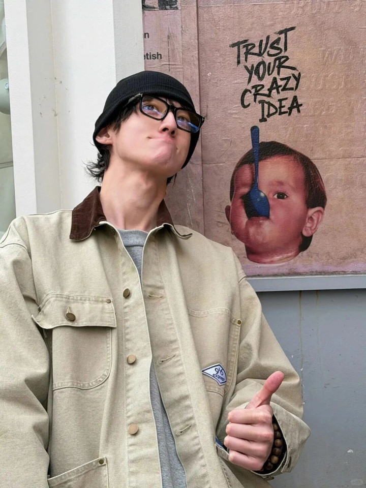 开始于蓝领工东说念主的工装夹克,因为其挺括的面料和标记性的贴袋谋划,成为了山系男和阿好意思咔叽有趣者的首选。它是最不挑身材的夹克,其结识的质感能有用修饰窄肩和纸片身材。