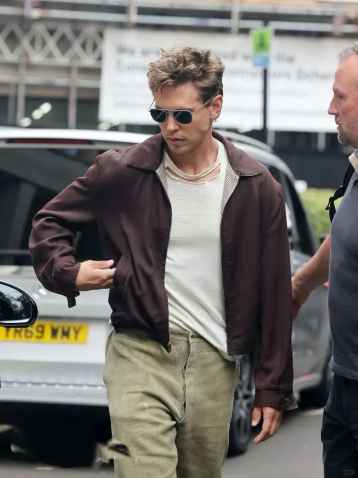 夹克的灵魂在于短。最理念念的长度是刚好盖住皮带位置,大概落在臀部上方。要是夹克过长盖过屁股,会一刹让你酿成“五五开”身材。