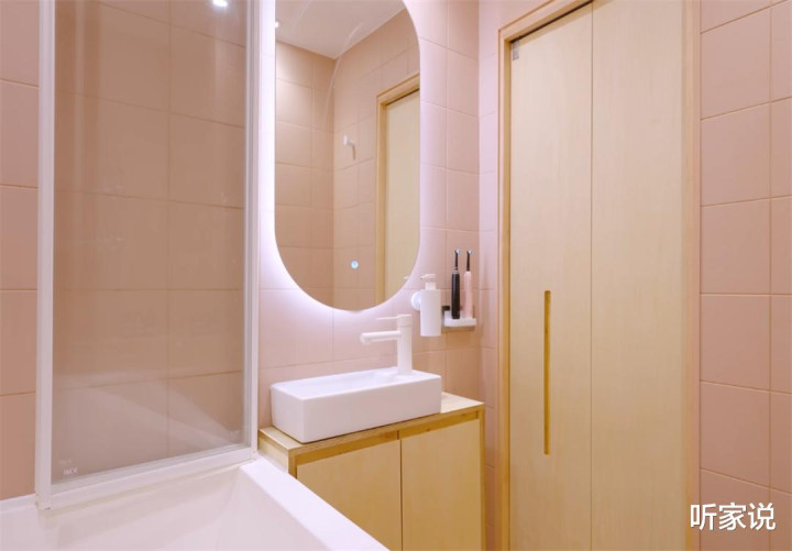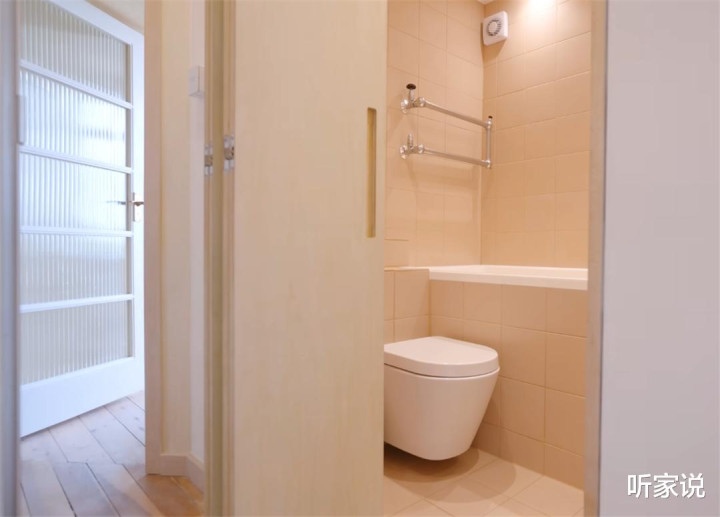 不外好在浴缸的存在,也相配于是个自然的淋浴区,在上头加装一说念折叠玻璃扇,就能终了干湿分区,幸免洗沐时把水溅获取处都是。