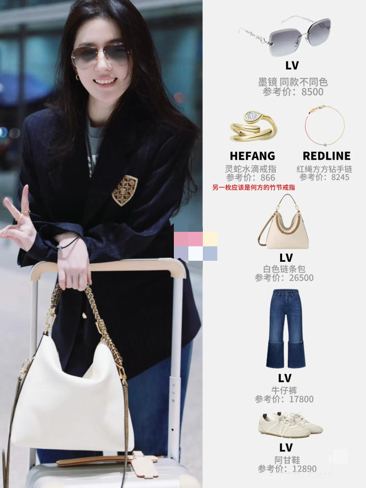 她捎带的轨则和饰品齐来自别的品牌,这个水点轨则价钱倒不贵,也就千元款,方钻手链价值八千多,挺符合春夏去捎带。